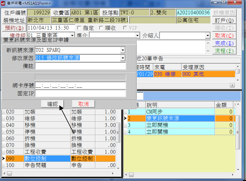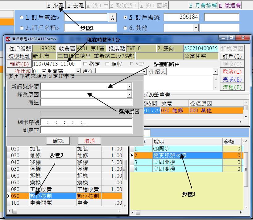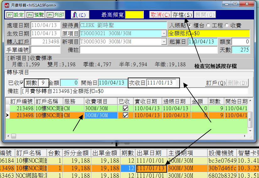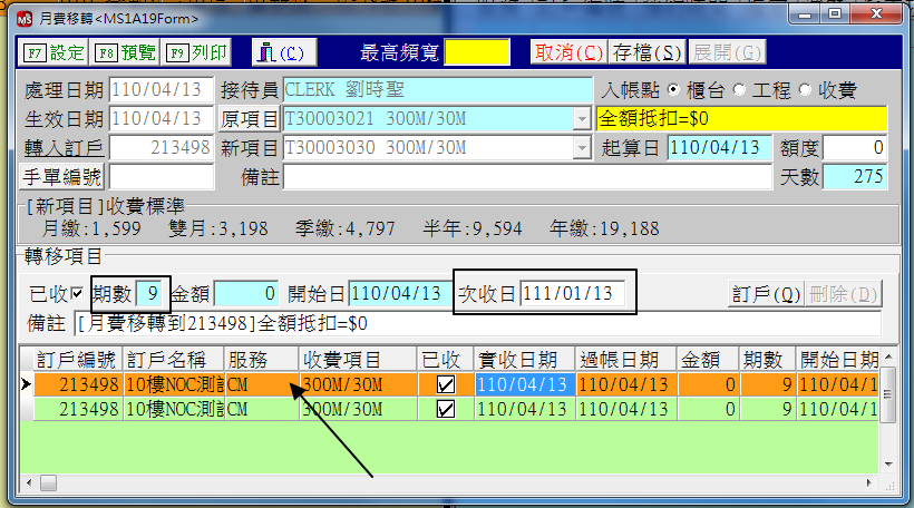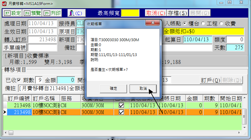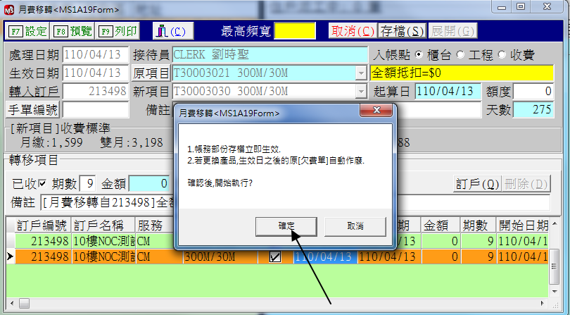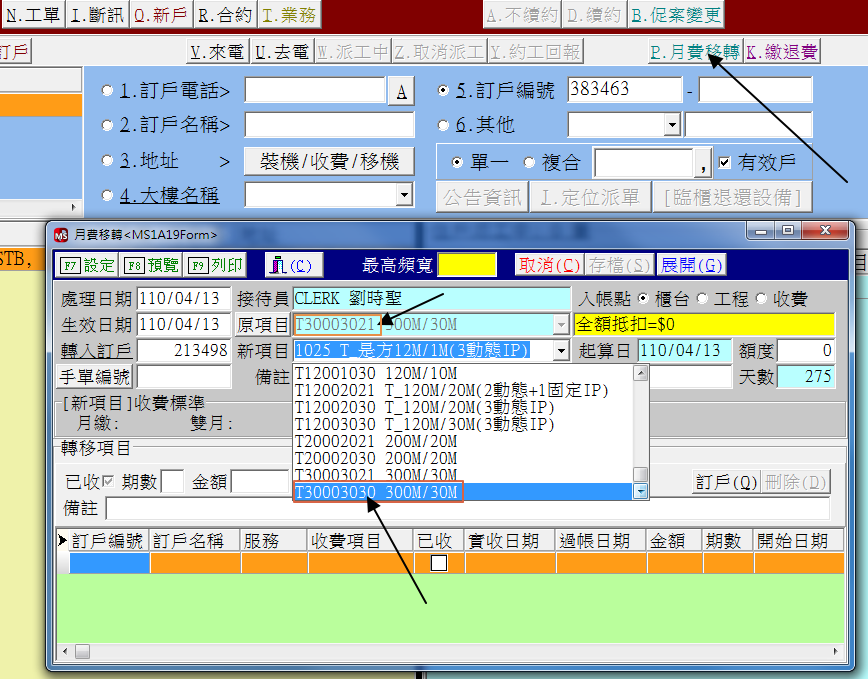 如圖所示,選擇月費移轉,按圖操作之後,發現客為為21結尾的方案,只能選擇固定IP路由,