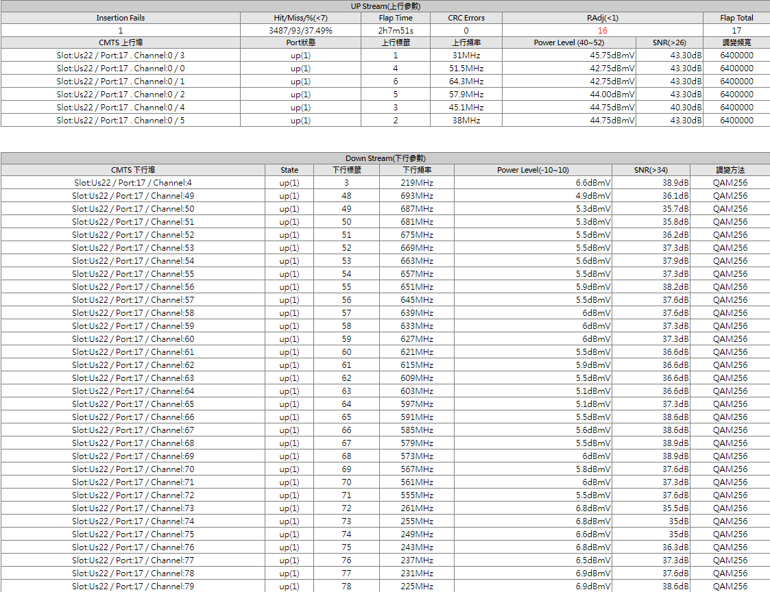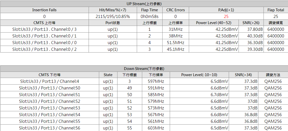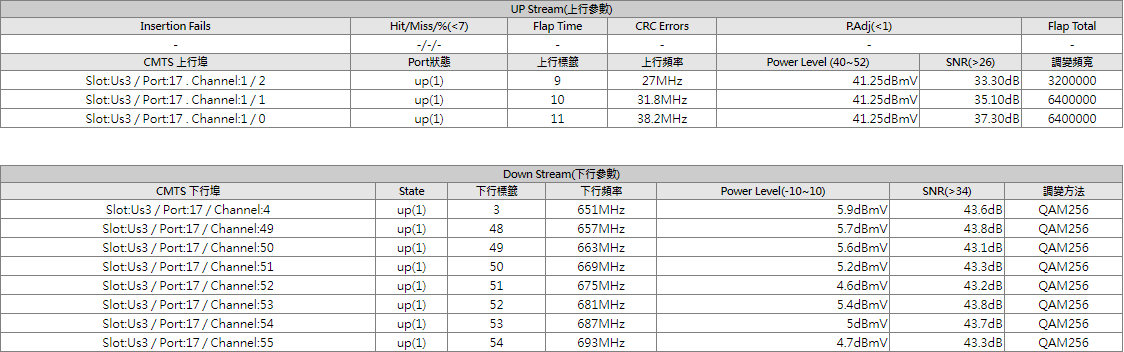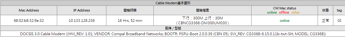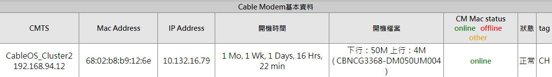 數據機參數檔,其中上下行必需跟寬頻方案相同,若不同則來電告知NOC