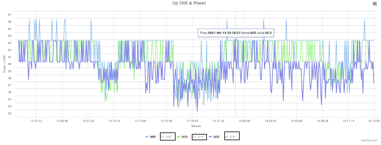 如上圖所示,將P結尾的點掉,即可出現只有上行SNR的畫面