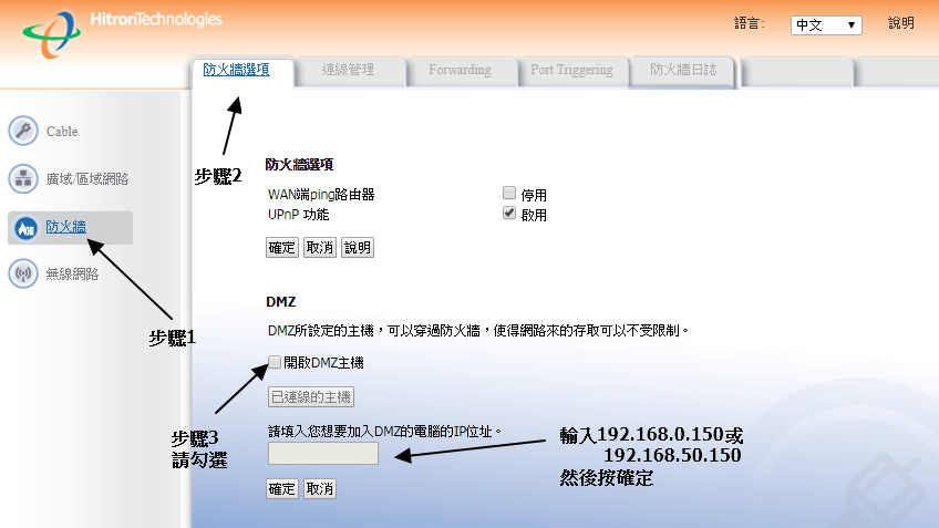 一、設定DMZ透通