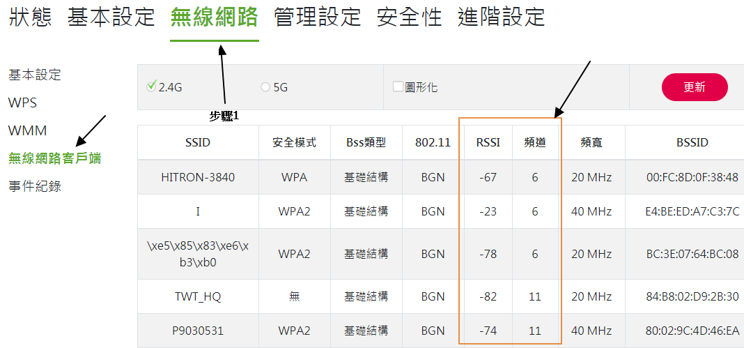 為避免重覆,2.4G跟5G分別使用不同帳號名稱,如下方示範